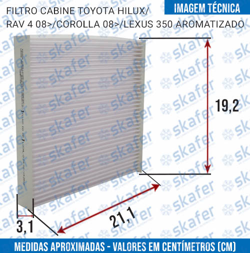 FILTRO CABINE TOYOTA HILUX RAV 4 2008 EM DIANTE COROLLA 2008 EM DIANTE LEXUS 350